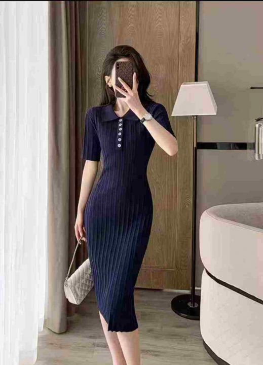 8.8清110件女polo领短袖针织裙收腰修身显瘦连衣裙女夏季气质包臀裙长裙 码...