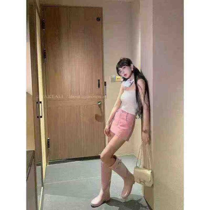 甜辣风女牛仔短裙 粉色高腰A字裙 工装牛仔半身裙,数量490条,尺码sml码,...