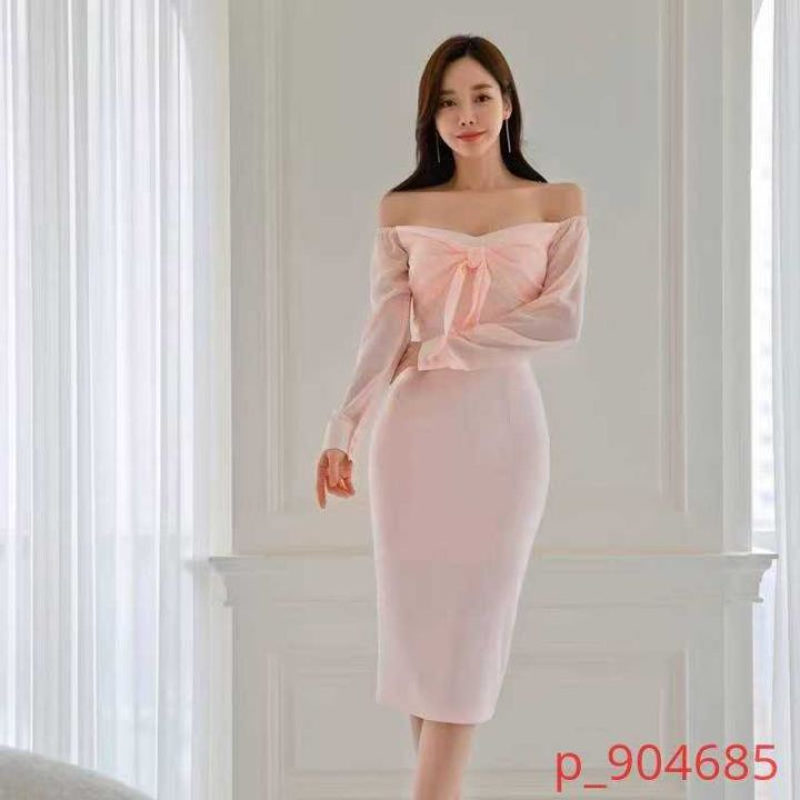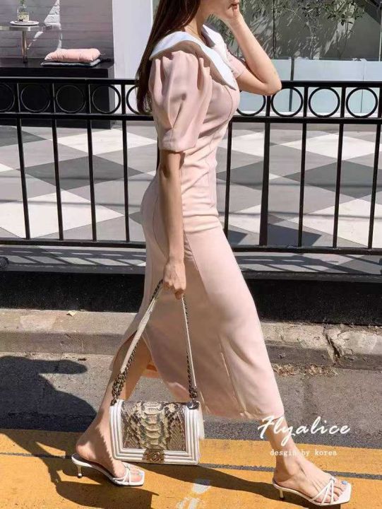 ☕️韩版女装甜美蝴蝶结雪纺泡泡袖拼接气质方领修身中长款连衣裙女春150件...