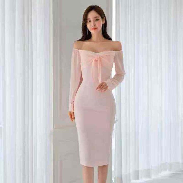 ☕️韩版女装甜美蝴蝶结雪纺泡泡袖拼接气质方领修身中长款连衣裙女春150件...