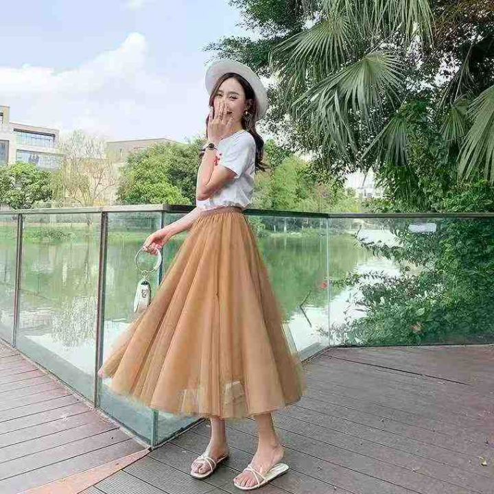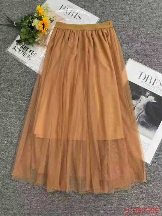 夏秋季新款时尚百搭显瘦百褶大摆裙网纱半身长裙,独立包装,码数S--XL码,5...