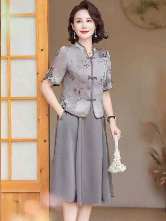 ① 妈妈款新中式国风短袖连衣裙两件套!独立包装,码数M-3XL,数量50套左右...