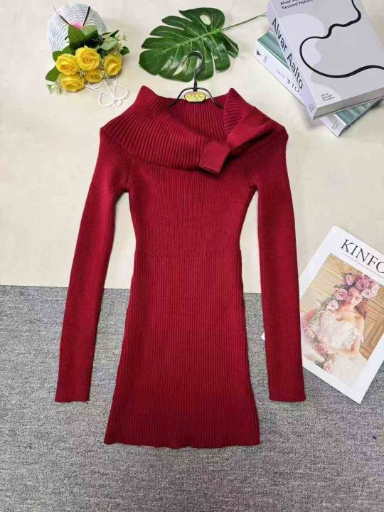 名媛气质蝴蝶结一字领包臀显瘦性感针织连衣裙女,单款单色,高弹力,面料厚...