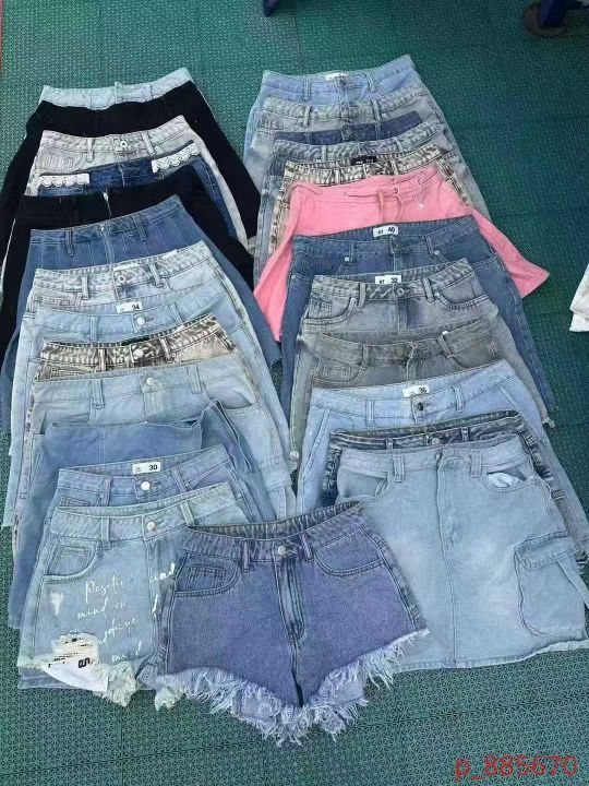 天猫下架一批高品质女装洗水棉网红爆款牛仔短裤短裙,独立包装带吊牌或是腰...