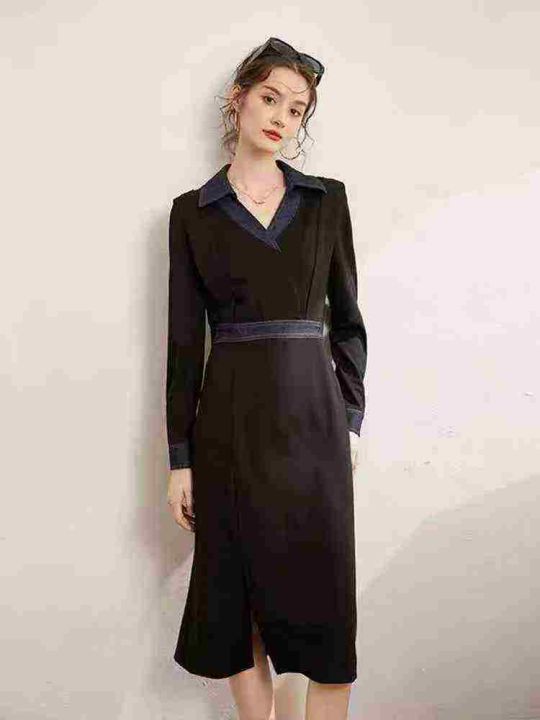 [月亮]:7.5清353件[月亮]:仿牛仔拼接V领通勤休闲连衣裙[月亮]:2,4,6,独...