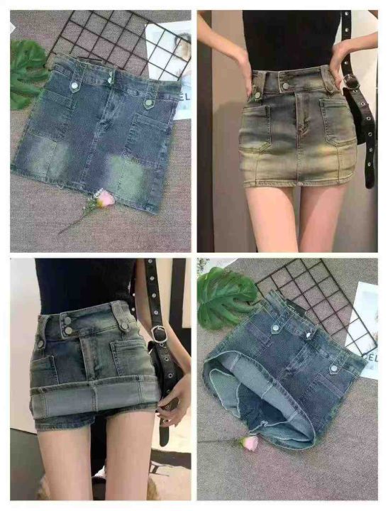 133条辣妹新款防走光牛仔高腰包臀短裙,两款(毛边牛仔裙有100条SMLXLⅩXL码...