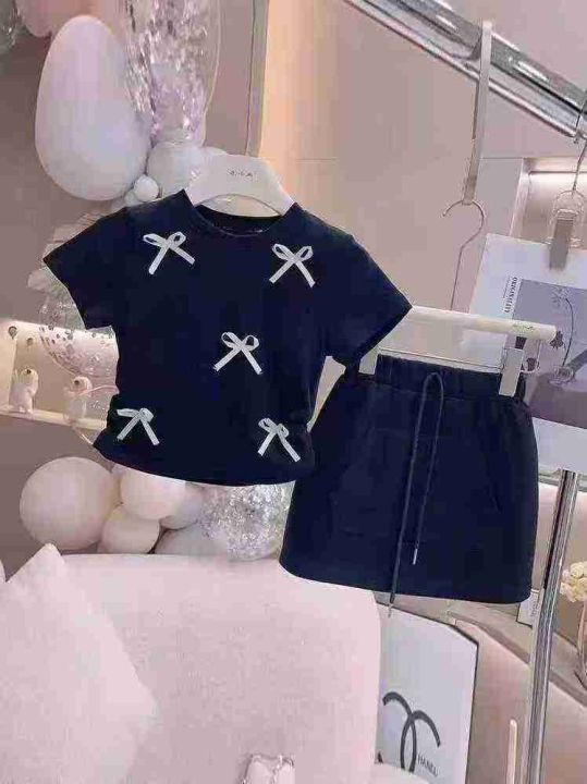 女童没计感时尚洋气蝴蝶结侧拉皱短袖加短裙两件套套装,85棉面料,335套,1...