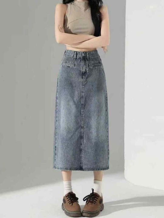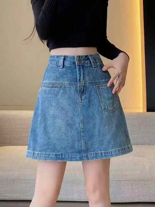 ☕️美式牛仔半身裙女春夏新款高腰显瘦宽松百搭复古A字包臀短裙225条全清8....