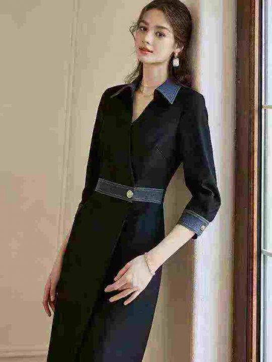 [月亮]:7.5清353件[月亮]:仿牛仔拼接V领通勤休闲连衣裙[月亮]:2,4,6,独...