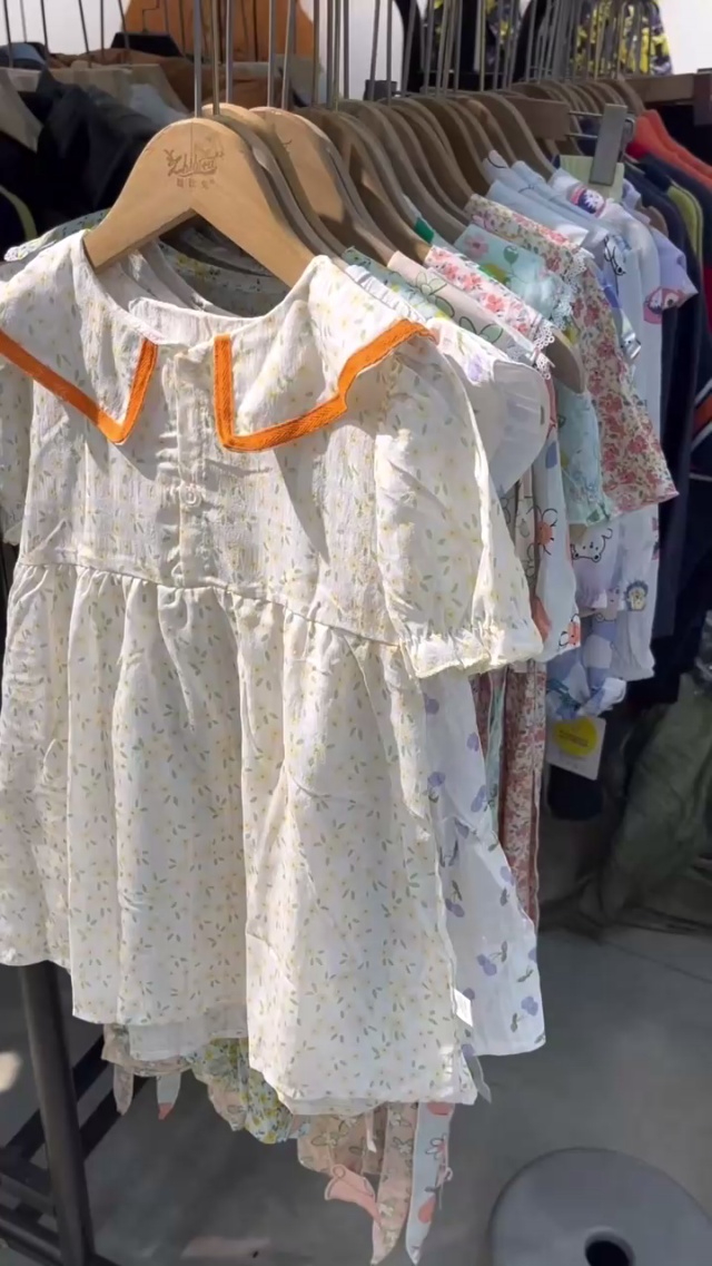 刚到库房的儿童连衣裙,套装少量的防晒衣,一共1300多件全部整首齐码,90—...