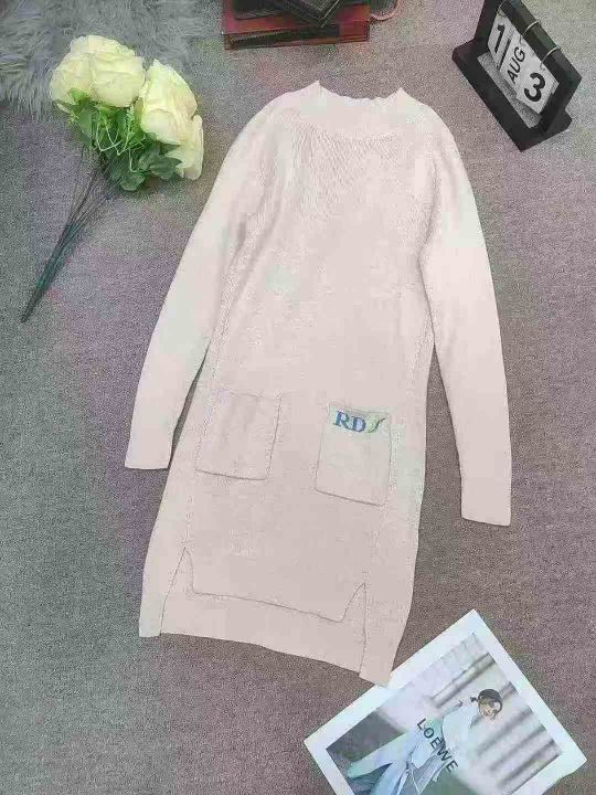 秋冬新款圆领针织长袖中长款针织裙显瘦百搭打底裙,独立包装,均码,500件...