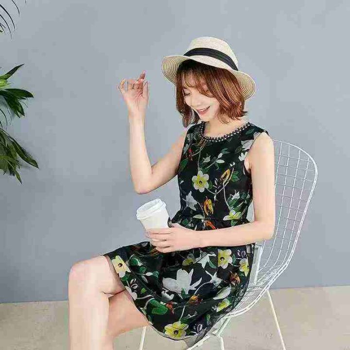 新款时尚显瘦圆领裙子钉珠气质收腰无袖网纱连衣裙2024年。单款单色三个码15...