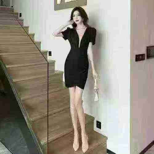 法式赫本风高级感小黑裙V领修身显瘦包臀裙2025夏季新款连衣裙全清价6.5,数...