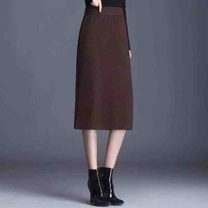 秋冬新款女装a字高腰显瘦松紧腰中长款包臀半身裙,独立包装,码数M、L码,2...