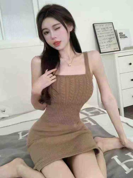 夏季新款纯欲风辣妹性感收腰显瘦仿雪尼尔针织包臀吊带连衣裙,独立包装,均...
