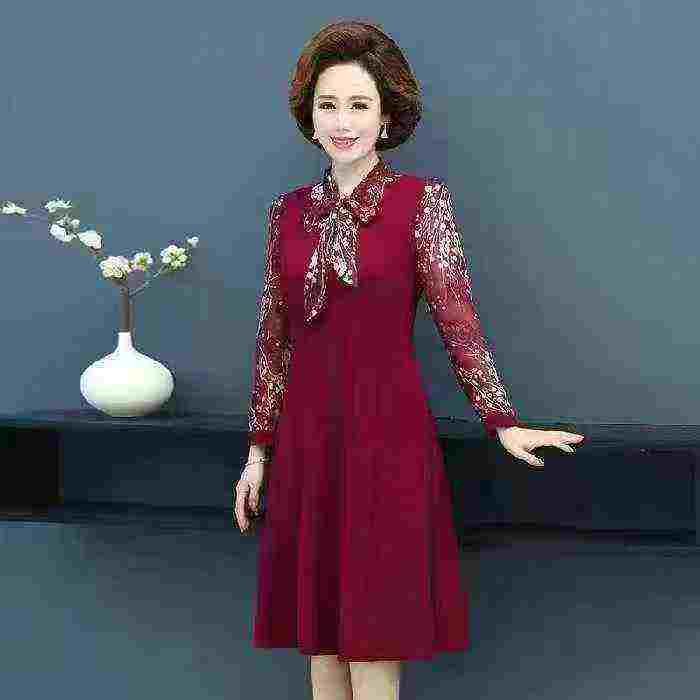 15.8元清妈妈款晚宴婚礼高贵秋冬款蕾丝珠片连衣裙,数量91件,码数L-5XL,...