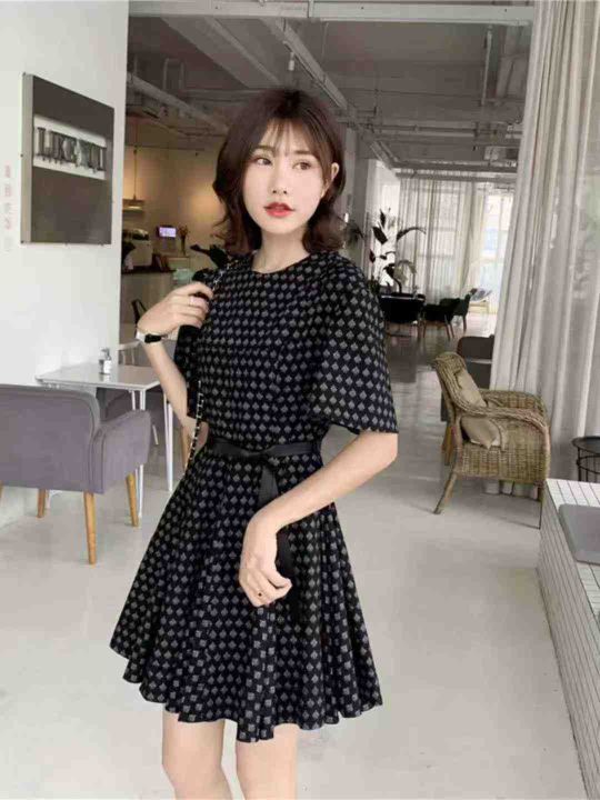 ⭐⭐120件SPYB休闲复古收腰显瘦泡泡袖气质洋气法式碎花连衣裙,配有皮带装...