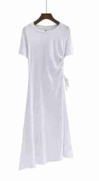 12清800条,休闲抽绳开叉中长款t恤连衣裙女2025新款夏季收腰显瘦长裙子女夏...