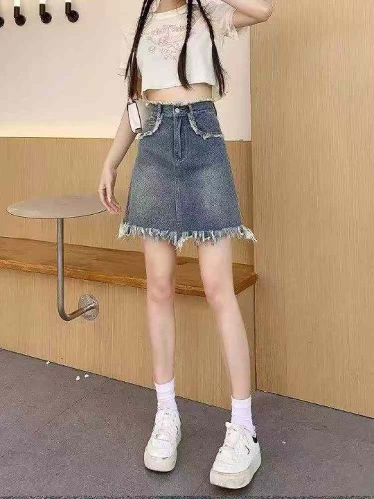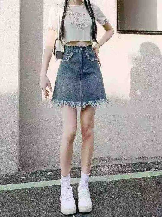 4.9元全清,不规则牛仔裙高腰a字大码胖mm半身裙女夏季女装排扣,独立包装,...