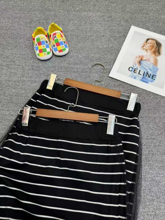2025夏季休闲新款高腰松紧半身裙显瘦条纹网纱裙,独立包装,S-2XL,数量80...