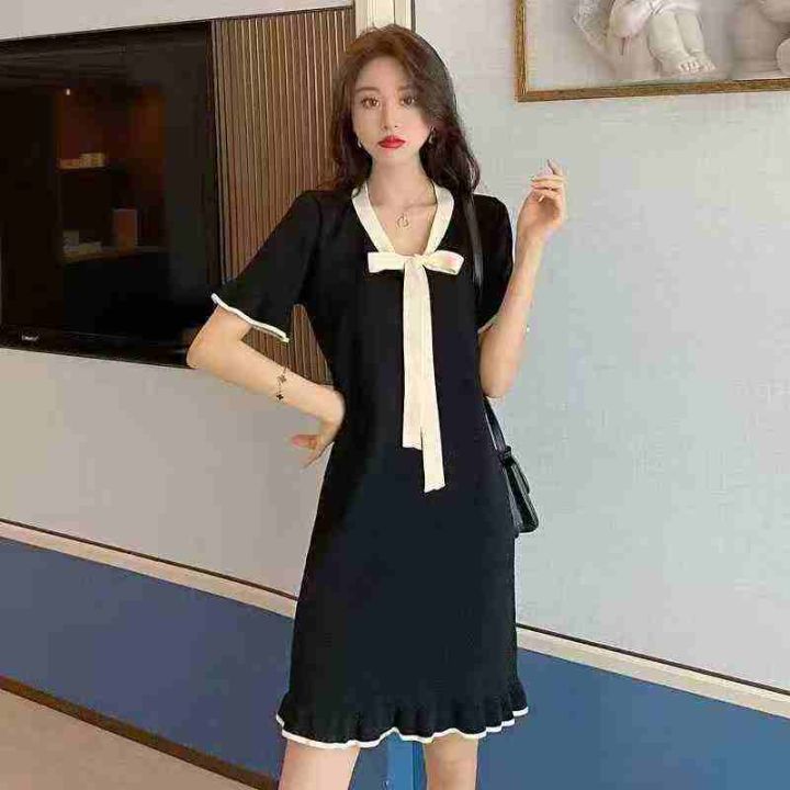 6.9元清性感辣妹靓妹木耳边针织修身连衣裙,数量92件,单款黑色,均码,独...