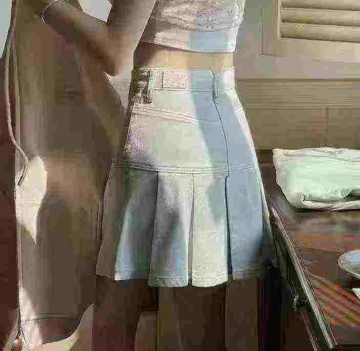 7.8清278件女牛仔百褶裙夏季新款水洗棉 靓妹辣妹高腰显瘦小众百搭半身裙 ...