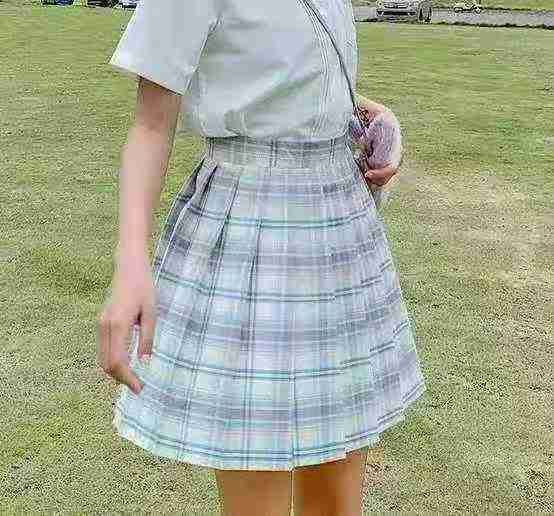 休闲格纹百褶裙247件7.5,侧腰拉链,腰头可调节,图三38件,有内衬,码数S-...