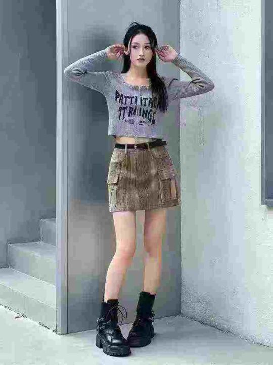 杭州品牌复古工装牛仔短裙裤夏季新款小众设计感女装短款辣妹高腰显瘦做旧A...