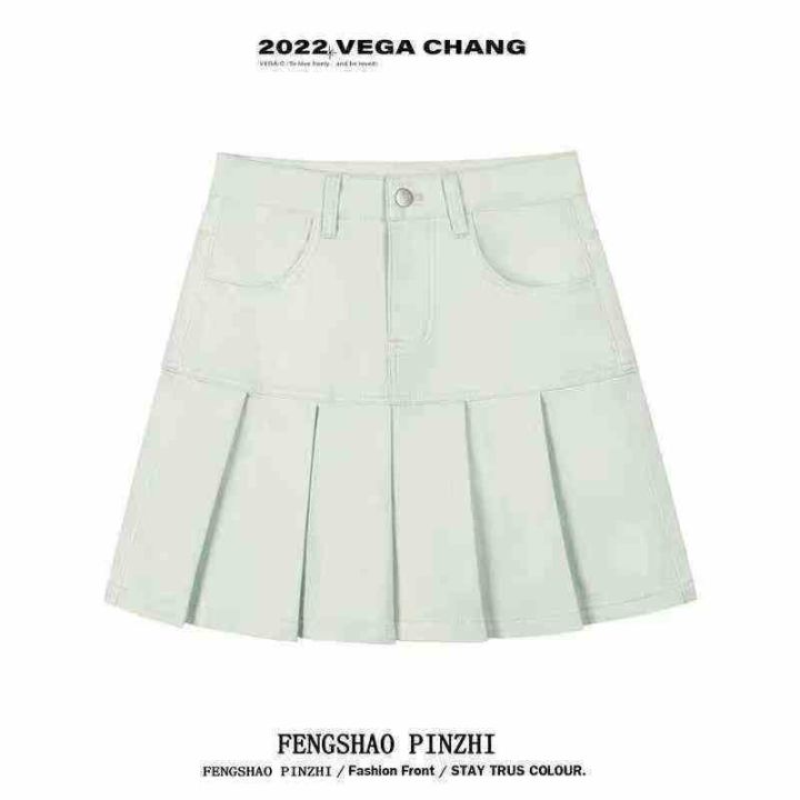 7.8清278件女牛仔百褶裙夏季新款水洗棉 靓妹辣妹高腰显瘦小众百搭半身裙 ...