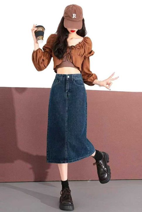 牛仔长裙☕️120条全清13.8元,码数SML,独立包装,蓝色开叉设计牛仔裙设计...