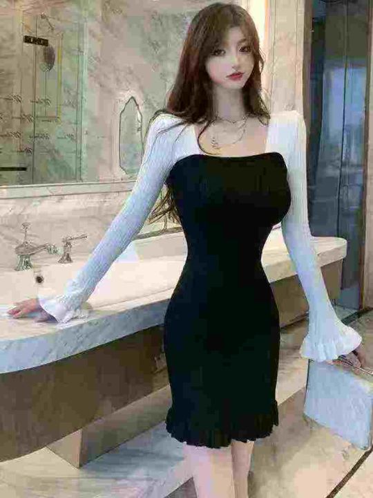 6.9元清性感辣妹靓妹木耳边针织修身连衣裙,数量92件,单款黑色,均码,独...