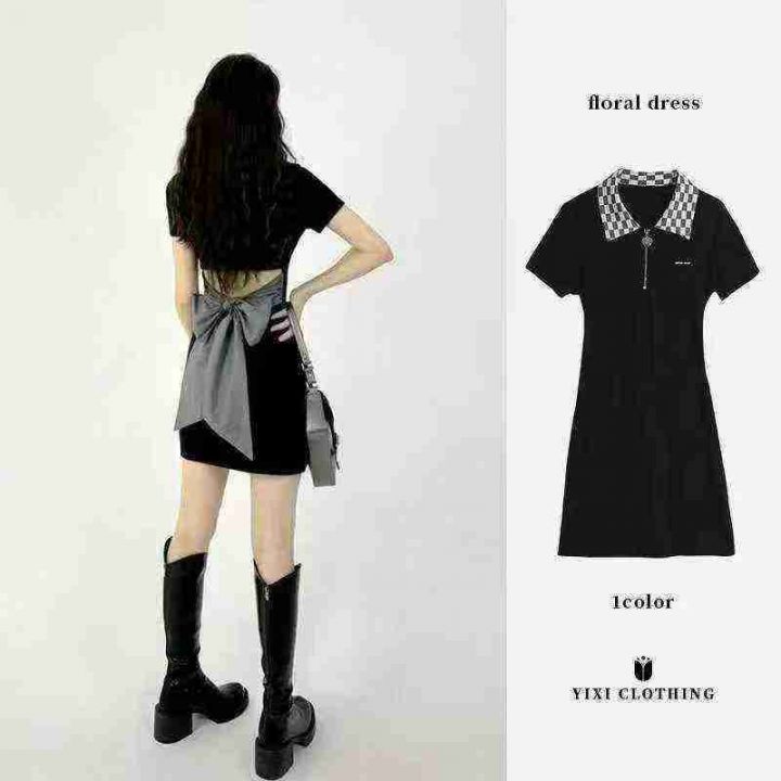 全清价7.9元捡漏52条夏季新款法式辣妹后镂空蝴蝶结黑色polo领包臀连衣裙,...