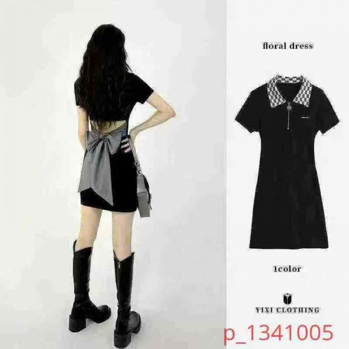 全清价7.9元捡漏52条夏季新款法式辣妹后镂空蝴蝶结黑色polo领包臀连衣裙,...