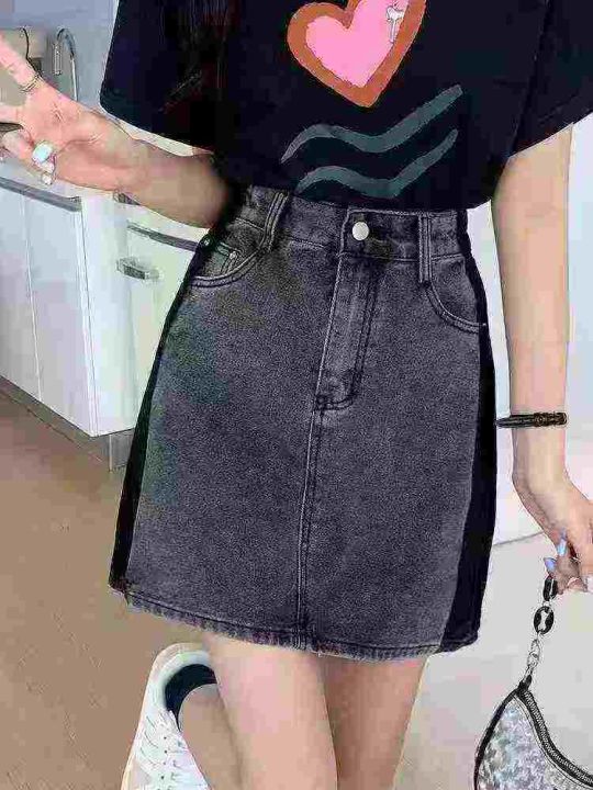 ☕️辣妹拼接撞色牛仔短裙女夏季显瘦复古百搭高腰a字半身裙50条全清8.8元,...