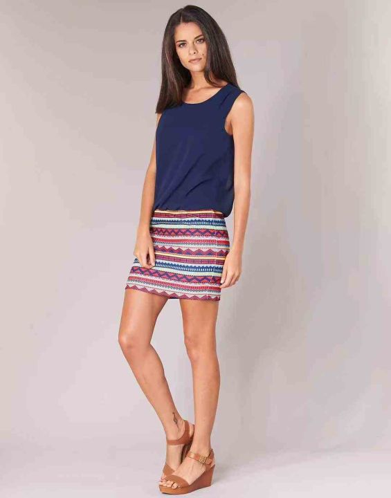 160件左右Moony Mood品牌女士时尚修身短款蓝色拼接连衣裙!雪纺面料带内衬...
