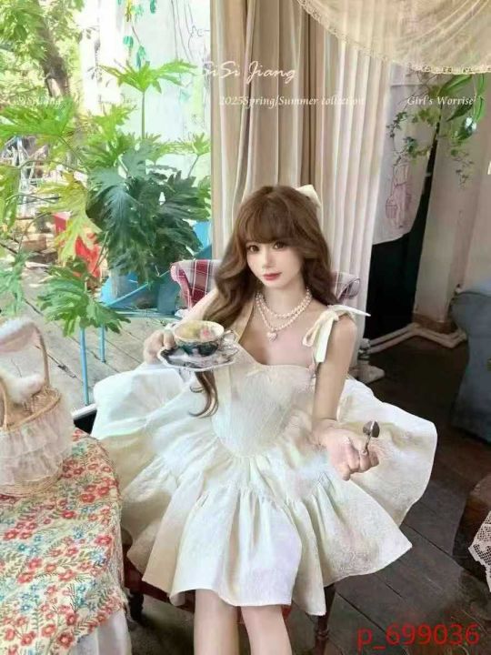 清货9.9蝴蝶结肩带连衣裙夏短款a字蓬蓬温柔风法式初恋裙,实物图为准,码数...