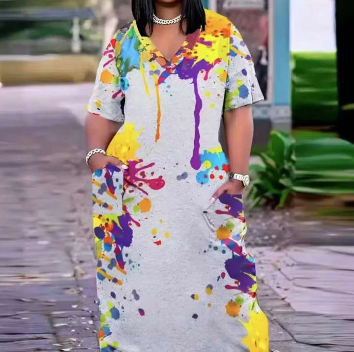 6.8清欧美女装V领印花无袖连衣裙,整款多色,数量200条,码数S-2XL,拉链式...