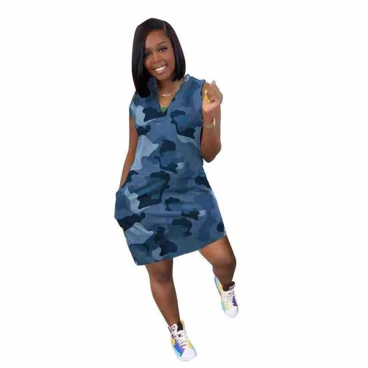 6.8清欧美女装春夏季新品 休闲时尚个性无袖迷彩连衣裙,整款三色,数量400...