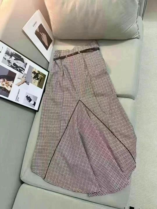 夏季高品质时尚设计款格子半身裙女高腰系腰带不规则A字裙中长款,均码,14...