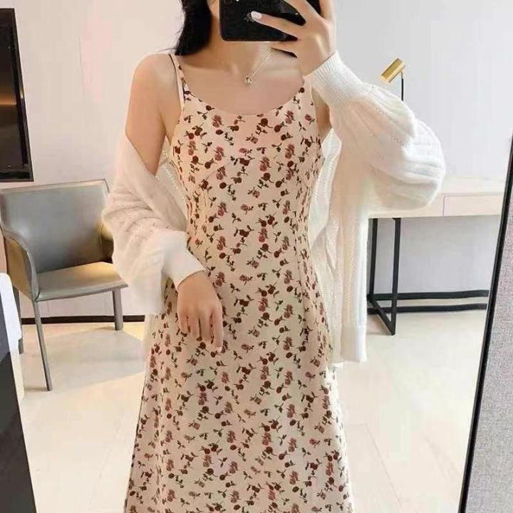 吊带两件套连衣裙160件10.8,面料有弹力,下摆开叉,镂空针织罩衫,码数S-2...
