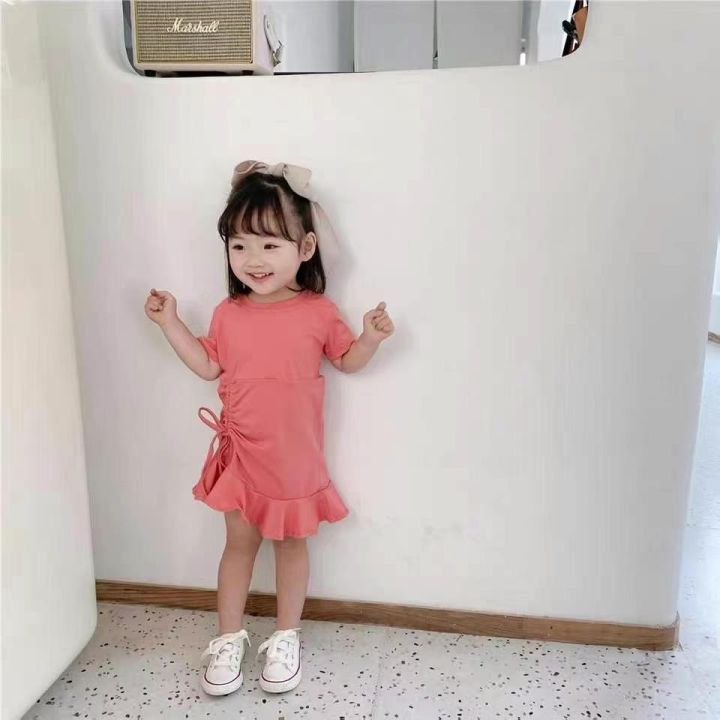上新天猫店下架时尚童装纯棉抽绳连衣裙 2500件左右 码数80-150 单款5色...