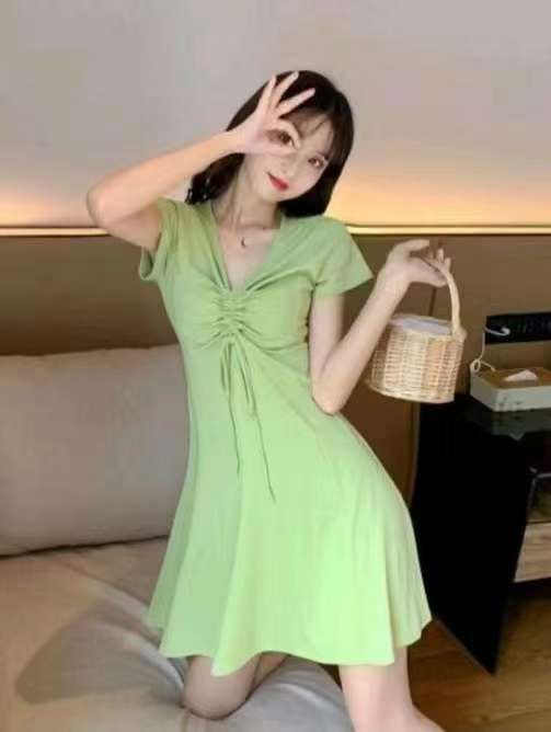 法式短袖连衣裙425件6.9,面料有弹力,抽绳褶皱设计,码数M-3XL,独立包装,...