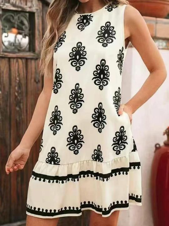 10清1500条,复古印花连衣裙女夏季2025新款修身显瘦气质民族风高端a字中长...