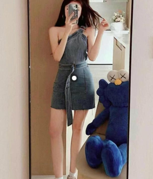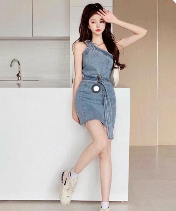 夏季新款洗水棉网红设计款性感辣妹修身显瘦牛仔连衣裙,独立包装带吊牌,码...