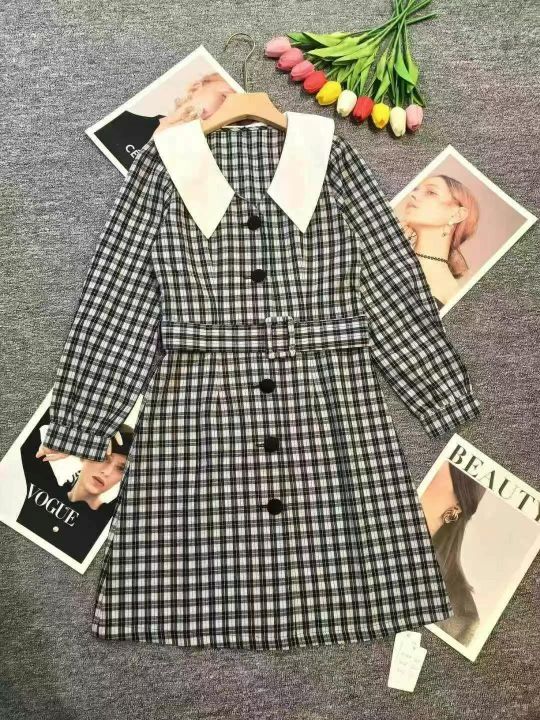 捡漏全清:16.8一件法式气质翻领格子显瘦百搭长袖连衣裙,[爱心]30件左右,...