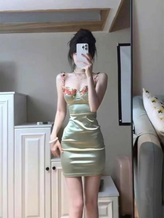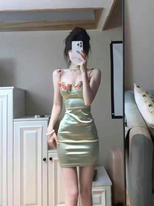 ① 纯欲风法式缎面吊带连衣裙!花朵刺绣款!面料做工超级好!独立包装带吊...