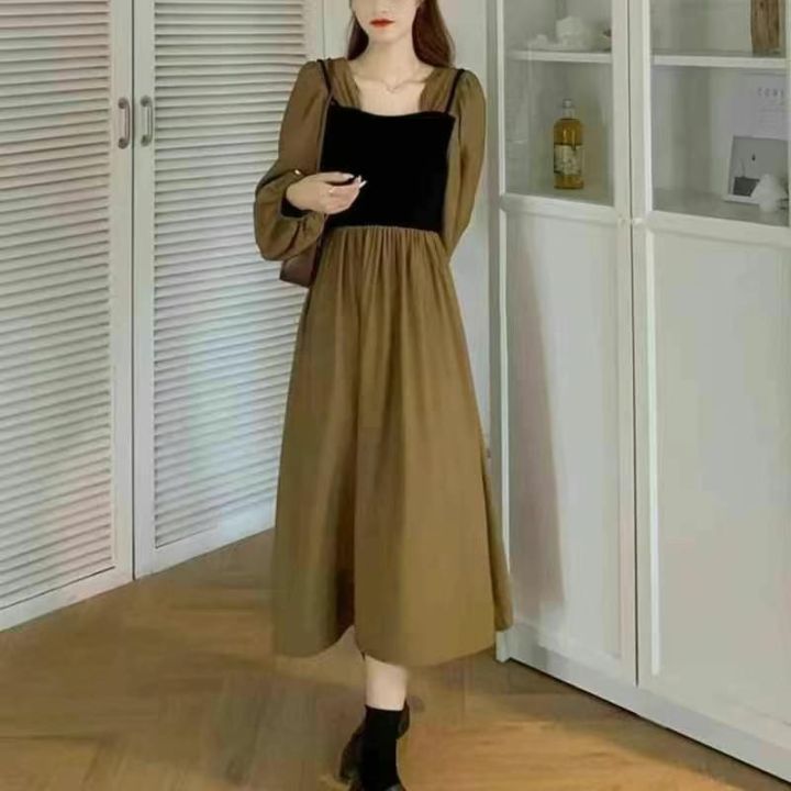 法式连衣裙女大码女装新款韩版法式气质泡泡袖收腰设计感拼接裙子,总数量15...