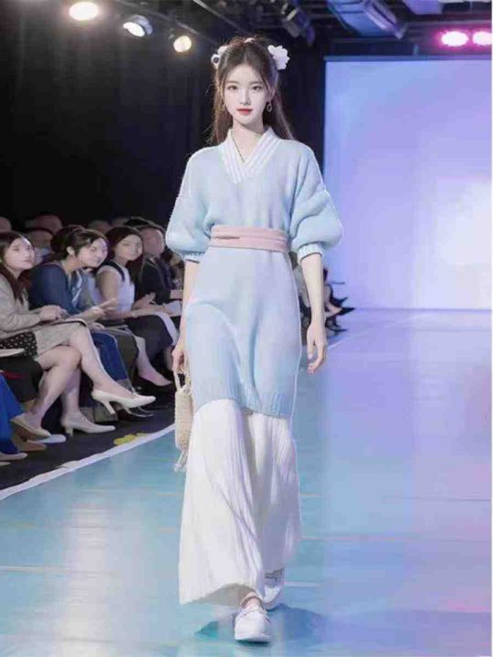 秋冬新款新中式慵懒风汉元素禅意国风加厚中长款毛衣连衣裙,独立包装,均码...