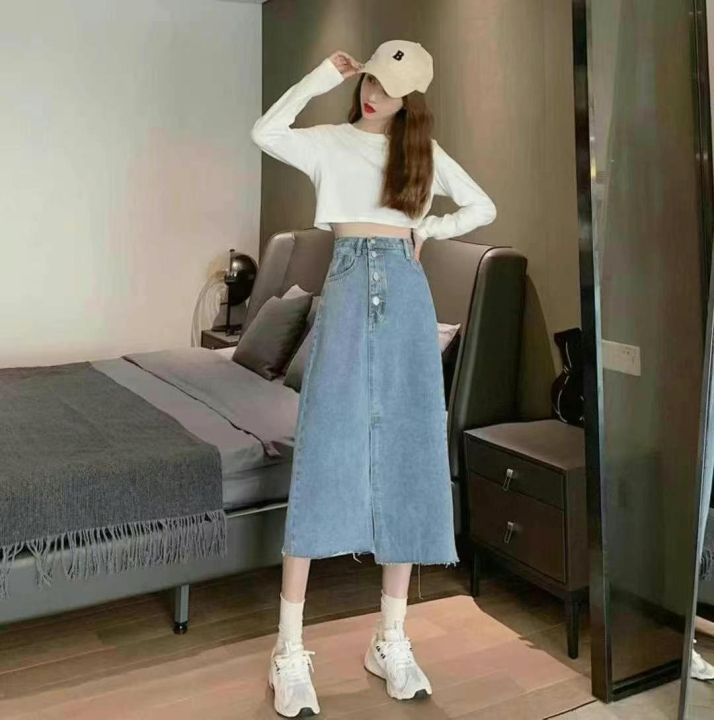 春夏新款洗水棉高腰显瘦a字半裙中长款牛仔半身裙,独立包装带吊牌,码数S- ...