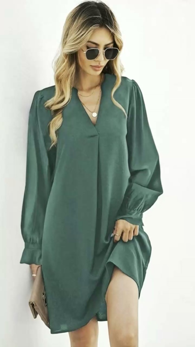 清货价9.8,数量147件左右纯色裹胸款春秋季衩领束带灯笼袖长袖连衣裙尺码S-...